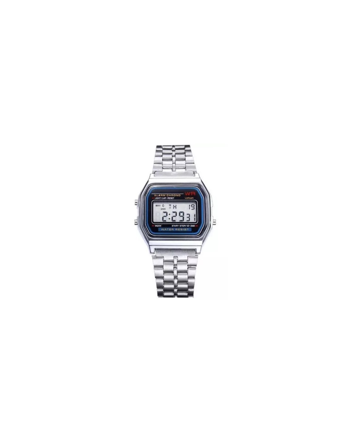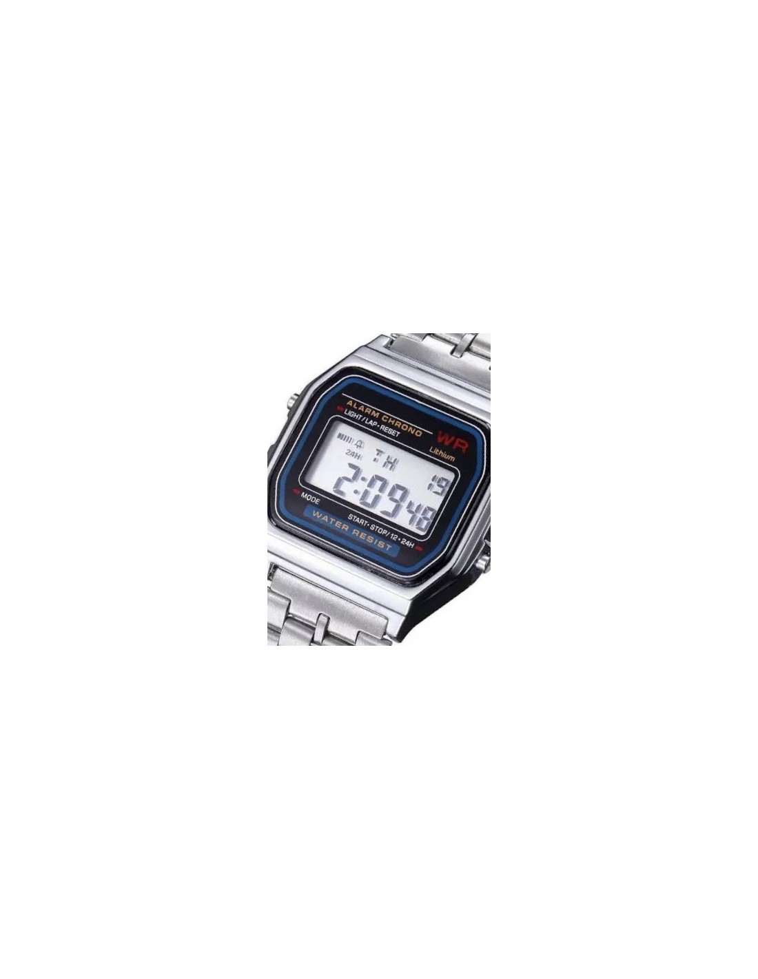 Reloj dorado o plateado estilo Casio.